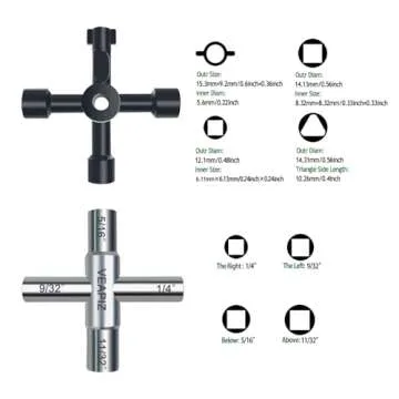 Show moreIntroducing the VEAPIZ 2PCS 4 Way Sillcock Water Key Set - your essential companion for everyday plumbing needs! This durable toolset includes a 4-way sillcock key featuring sizes of 1/4", 9/32", 5/16", and 11/32", as well as a versatile water utility key with square, triangular, and circular shapes. Whether you are tightening or loosening valves, this pair of multifunctional keys is designed to handle all your requirements, ensuring stability and performance in various applications.