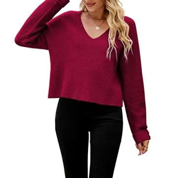 Show moreExperience elegance and comfort with the Veatzaer Female Long Sleeve V Neck Pullover Sweater! Designed for the modern woman, this stunning sweater features a captivating V-neckline that adds just the right amount of allure while remaining sophisticated. The cropped cut perfectly complements high-waisted jeans or skirts, making it a versatile piece for your wardrobe. Made with a blend of soft, breathable materials, this sweater will keep you cozy during chilly days and effortless during warmer times. With its eye-catching wine red hue, it’s sure to turn heads, whether you're heading to a casual brunch or a night out on the town.