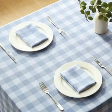 Veblandy Checkered Tablecloth Rectangle Waterproof Gingham Table Cloth Washable Buffalo Plaid Table Cover Wrinkle Free for Kitchen, Dining and Outdoor Picnic, 52 x 70 Inch, Light Blue and White