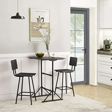 VECELO 3-Piece Bar Table Chairs, Square Counter Height Bistro Dinette Sets with 2 Barstools for Kitchen, Breakfast Nook, Small Spaces, Matte Black