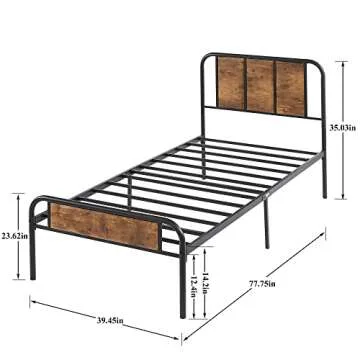 Show moreIntroducing the VECELO Twin Bed Frame with Wooden Headboard and Metal Slats, a superb fusion of elegance and practicality for any bedroom environment. Crafted with meticulous attention to detail, this bed frame promises both stability and style. Its impressive design features a sturdy framework consisting of 6 robust legs and 14 heavy-duty steel slats, providing an exceptional foundation to support various mattress types. With an astounding weight capacity of up to 400 pounds, this frame is built to last. Its eye-catching wooden grain headboard and footboard exhibit a beautifully linear three-dimensional patchwork, contributing to your home’s rustic industrial aesthetic.