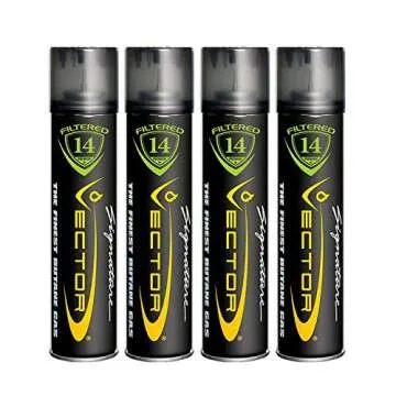Introducing Vector Quintuple Refined Butane Fuel, the premium butane solution that transforms your lighting and heating needs! With an impressive purity of 99.9%, this butane stands out, thanks to its 14 times filtration process that ensures each canister is free from impurities. This meticulous refining process guarantees a smooth flow and reliable, consistent flame, making it the preferred choice for both casual users and professionals.