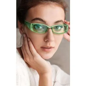 Veda Tinda Vision Green Rectangle Sunglasses for Women Retro 90s Rave Trendy Y2k Rectangular Clear Shades for Men Warp Around Sport Transparent Mens Sun Glasses UV400 Protection Womens Accessories