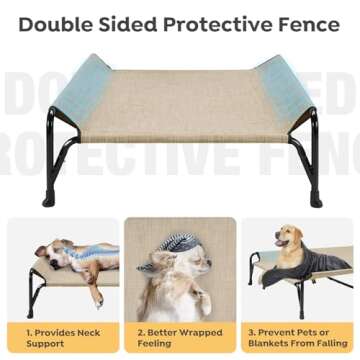 Veehoo Elevated Raised Dog Bed, Original Cooling Outdoor Dog Cot with Double Sided Protective Fence for Large Dogs, Washable Breathable Mesh, V-Shaped No-Slip Feet, Large, Beige Coffee