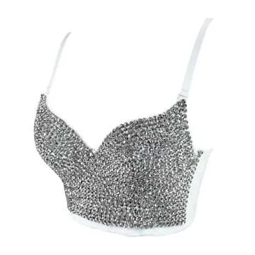 VEENDEO Women's Bustier Crop Top Mesh Corset Top Push up Rhinestone Diamond Bra Club Party Vest (#2 White, XS)