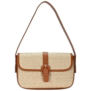 Show moreIntroducing the Vegan Leather Rattan Straw Y2K Retro Shoulder Bag Tote Purse Clutch in an enchanting tan color—a perfect blend of elegance and functionality that fits seamlessly into your lifestyle. Measuring at 10 inches in length, 1.5 inches wide, and 6.5 inches in height, this bag is designed to accommodate your essentials with style. Crafted from a unique combination of high-quality straw and vegan leather, it features a stunning gold-tone hardware that adds a touch of sophistication to any outfit. With its innovative flap closure with a magnetic snap, accessing your belongings has never been easier or safer.