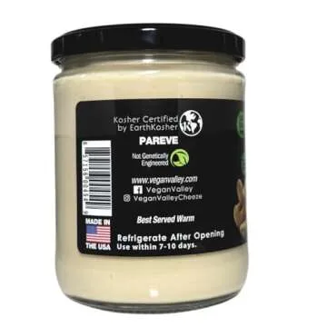 VEGAN VALLEY Jalapeno Cheeze Sauce - Cashew Based Nacho Cheeze - 16 oz - Certified Kosher, Gluten-Free, Soy-Free, and Dairy Free Cheese Makes Great Vegan Pasta Sauce, Dips for Chips, and More