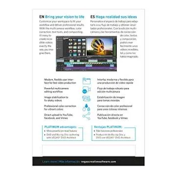 Show moreUnleash your creativity with VEGAS Movie Studio 15 Platinum, a state-of-the-art video editing software that elevates your editing skills to new heights. Designed with a clear and customizable user interface, this software allows you to focus on what matters most – telling your story. With its comprehensive features, you can effortlessly edit video and audio, creating stunning productions that are sure to impress. Whether you are a beginner or a seasoned pro, you'll appreciate the intuitive tools that make video editing not only possible but enjoyable.