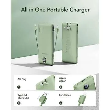 VEGER Portable Charger for iPhone Built in Cables and Wall Plug, 10000mah Slim Fast Charging USB C Power Bank, Travel Essential Battery Pack Compatible with iPhones, iPad, Samsung More Devices(Green)
