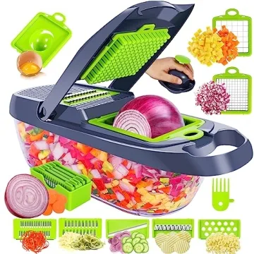 Show moreTransform your kitchen prep with the Pavsrmy Multifunctional 12-IN-1 Kitchen Veggie Chopper. This innovative tool is designed to make your cooking process faster, easier, and more enjoyable. With its 8 interchangeable blades, you can slice, dice, shred, and mash a wide variety of vegetables and fruits in seconds. The heavy-duty 420 stainless steel blades ensure precise cuts every time, while the BPA-free ABS plastic body guarantees durability and safety. The 1.2L catch tray with a drain strainer makes cleanup a breeze, and the compact design ensures easy storage. Whether you're preparing a quick salad, a hearty stew, or a festive party platter, this vegetable chopper is your go-to kitchen gadget.