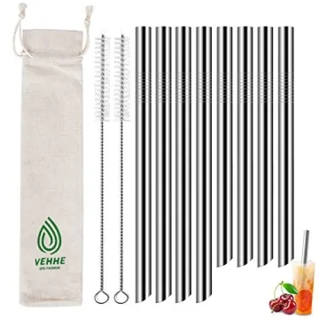 Show more Introducing the VEHHE Reusable Boba Straws, the perfect solution for all your thick beverage needs! Each set comes with 8 pieces, including 4 boba straws (9.5 inches) and 4 smoothie straws (8.5 inches), designed to handle everything from bubble tea to milkshakes and smoothies. Crafted from premium 304 stainless steel, these straws are not only reusable but also environmentally friendly, making them a smart choice for conscious consumers. Featuring two included cleaning brushes and a compact straw storage case, you can easily take your straws on-the-go or ensure they’re always clean and hygienic.