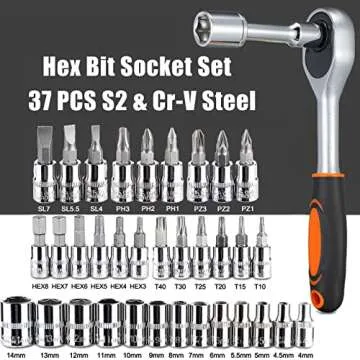 VEHIMACH Drive Socket Set, SAE and Metric Hex Bit Socket Set, Ratchet Wrench Set with S2 & CR-V Sockets, Mechanic Tool Kits for Auto Repair Household