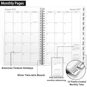 Veiai 2025 Planner,January - December, Wirebound,Weekly and Monthly with Monthly Tabs Planner, Frosted Cover,6.5"x8.5", Twin-Wire Binding Calendar Notebook (Black)
