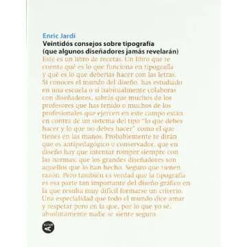 Show moreDescubre el fascinante mundo de la tipografía con "Veintidós Consejos sobre Tipografía" (Edición en Español), un libro diseñado para creativos y apasionados por el diseño gráfico. Este recurso esencial ofrece una recopilación de consejos prácticos y aplicables que te ayudarán a mejorar tu habilidad con las letras, desde la selección de la tipo adecuada hasta la comprensión de la jerarquía visual y la armonía entre el texto y el fondo. Ideal tanto para principiantes como para diseñadores experimentados, cada consejo está acompañado de ejemplos visuales que hacen más fácil el aprendizaje y la aplicación.