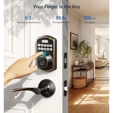 Veise Fingerprint Door Lock with 2 Lever Handles - Keyless Entry Door Lock, Electronic Keypad Deadbolt, Digital Smart Code & Front Handle Sets, Auto-Locking, Easy Installation, Oil Rubbed Bronze