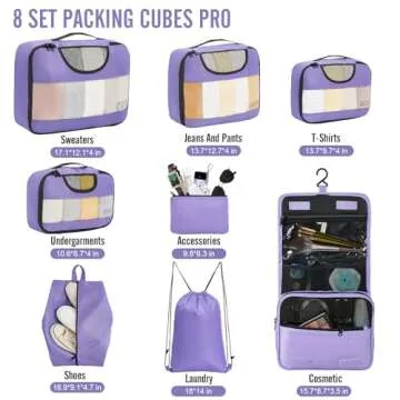 Veken 8 Set Packing Cubes for Suitcases, Travel Bag Organizers for Carry on Luggage, Suitcase Organizer Bags Set for Travel Essentials Travel Accessories in 4 Sizes(Extra Large, Large, Medium, Small)