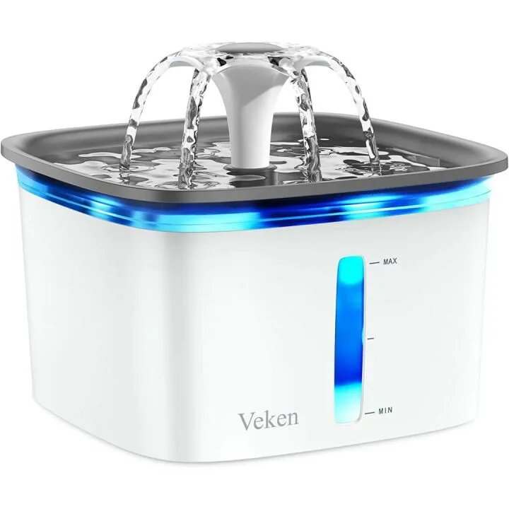 The inclusion of an LED light enhances visibility during the night, and the visible water-level window ensures owners can easily monitor the water supply. This blend of functionality, style, and convenience makes the Veken Pet Fountain a standout choice for ensuring your pets stay well-hydrated throughout the day.