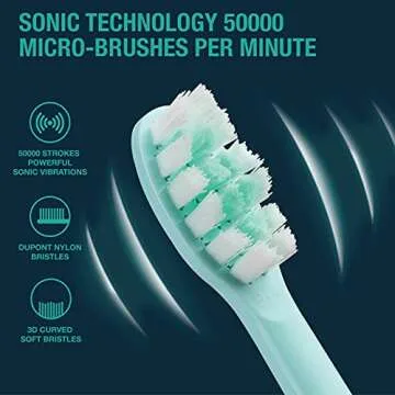 Vekkia Electric Toothbrush, Sonic Cleaning Rechargeable Toothbrush with Timer, Pressure Sensor, 4 Modes, 4 Brush Heads, Charge Lasts for 180 Days, Best Toothbrush for Adults (Blue Diamond)