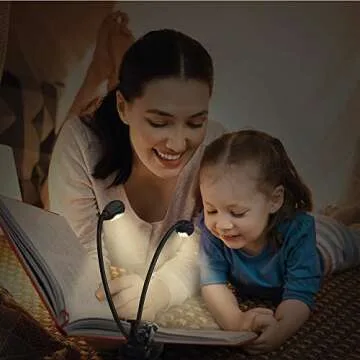 Vekkia Rechargeable 12 LED Warm Book Light, Clip On Bed Reading Light, Music Stand Lamp, 2 Brightness & 2 Goosenecks Light Up 2 Full Pages. Perfect for Bookworms, Kids & Music Lovers