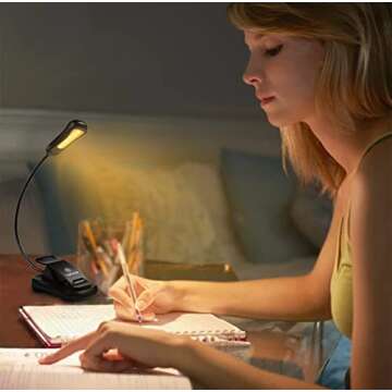 Vekkia Rechargeable 3000K LED Book Light, Easy Clip on Reading Lights for Reading in Bed. Perfect for Readers.