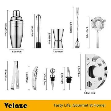 Velaze Cocktail Shaker Set,10 Pieces Stainless Steel Bar Tools - Bottle Opener, Pour Spouts,Measuring Jigger and Wine Stopper, Champagne Martini Shaker Sets