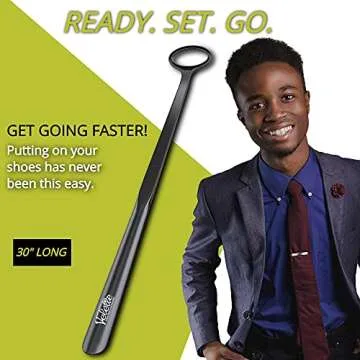 Show more This 30-inch long shoehorn is the perfect blend of practicality and comfort, designed to make putting on and taking off shoes a simple, strain-free experience. Made by a trusted brand known for quality and durability, this shoehorn combines plastic and sturdy metal for a long-lasting product that you can rely on for years. With its thoughtful design, it helps individuals of all ages effortlessly slide their feet into various types of footwear, from boots and cowboy boots to dress shoes and sneakers.