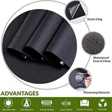 VELIMAX Static Cling Total Blackout Window Film Privacy Room Darkening Window Tint Black Window Cover 100% Light Blocking No Glue (17.7 x 78.7 inches)