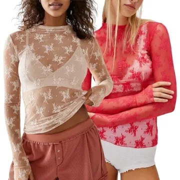 Show moreElevate your wardrobe with the VELISDE 2 Pack Women's Long Sleeve Lace Tops, a perfect blend of elegance and sensuality. Crafted from high-quality polyester, these mesh tops are not only comfortable and breathable but also stretchy, ensuring a flawless fit for all body types. The sheer design, adorned with exquisite floral embroidery, adds a touch of femininity and charm, making it a must-have for any fashion-forward woman. Whether you're layering it over a cami for a subtle look or wearing it alone for a bold statement, this mock neck blouse is versatile enough to suit any style.
