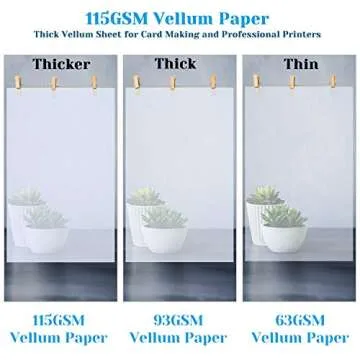 Show more Introducing Cridoz Thick Vellum Paper, your ultimate crafting companion for any special occasion! This premium quality vellum comes in a pack of 50 sheets, each with a weight of 115 GSM, ensuring a sturdy yet elegant finish that is perfect for various artistic projects. The versatility of this vellum paper makes it ideal for wedding invitations, party invitations, card inserts, table numbers, photo overlays, scrapbooking, and much more. It embodies both strength and transparency, allowing your designs to shine through beautifully.
