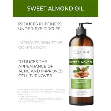 velona Sweet Almond Oil - 16 Fl Oz | 100% Pure and Natural Carrier Oil | Refined, Cold Pressed | Skin, Hair, Body & Face Moisturizing | Use Today - Enjoy Results…