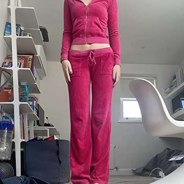 Show moreStep up your style game with this stunning Y2K Velour Tracksuit Set that combines comfort, elegance, and a touch of nostalgia. Crafted from premium fabrics, this two-piece tracksuit features a delightful blend of 95% polyester and 5% spandex, ensuring it feels soft against your skin while remaining breathable and moisture-wicking. The luxurious velvet material makes it not only comfortable but also visually striking—perfect for the modern woman who enjoys making a statement.