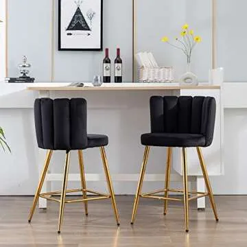 Velvet 26" Counter Height Barstools Set of 4 Modern Kitchen Stools Upholstered Bar Stool Chairs with Gold Metal Legs for Kitchen Island/Breakfast Bar/Restaurant, Black