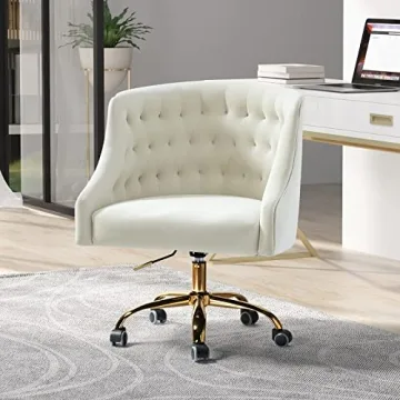 Show moreCreate a workspace that reflects your style while experiencing unparalleled comfort with the Velvet Home Office Chair with Gold Base. This modern desk chair is not only beautifully designed with a luxurious ivory velvet finish but also comes equipped with features engineered for your productivity and comfort. Ideal for lengthy hours spent on work or study, it combines high-density foam filling and ergonomic support to ensure you sit comfortably and maintain a healthy posture throughout your day.