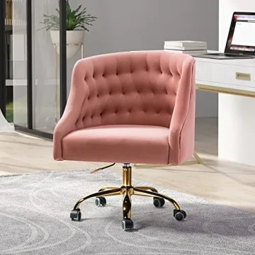 Show moreTransform your workspace with the stunning Velvet Home Office Chair with Gold Base, a perfect blend of comfort and style! Upholstered in premium velvet fabric, this chair not only highlights your space with its chic dusty rose hue but also provides unparalleled comfort for all-day use. Designed with high-density foam filling, its durability ensures that this chair does not lose its shape even after prolonged sitting. Additionally, its ergonomic design supports your back and promotes healthy posture, making it ideal for anyone who spends long hours at a desk.