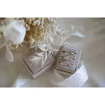 Show moreThe Velvet Ring Box in Sand Dollar White is more than just a stunning accessory; it is a welcoming home for your treasured rings. Designed with elegance, it boasts a dainty rectangular shape and is crafted from deep toned, silky velvet available in multiple colors. This plush ring box features a tri-slot design that securely holds up to three bands, measuring from 1-3mm, making it an ideal choice for multi-band displays, particularly for wedding details in flat lay photography.