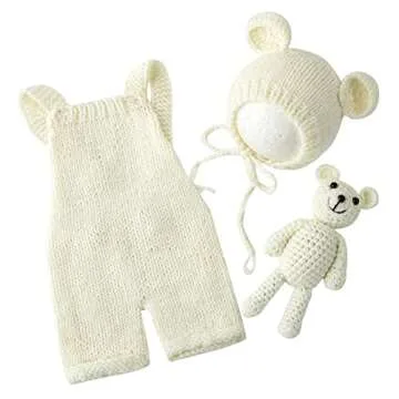Show more Capture the enchanting moments of your newborn's early days with the Vemonllas Newborn Photography Props Set—a delightful costume outfit designed for the perfect photoshoot! This stunning ensemble features a cozy knit bear hat and a charming romper that not only looks adorable but also offers maximum comfort for your little one. Crafted with care, the soft materials ensure that your baby stays snug while looking utterly precious in front of the camera.