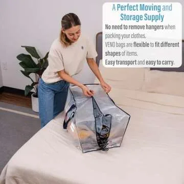 Show more Introducing the VENO Heavy Duty Moving Bags - your ultimate solution for a hassle-free move! Designed with innovation and practicality in mind, these bags eliminate the need for cumbersome packing boxes, replacing them with a lightweight, convenient, and economical alternative. Simply unfold, unzip, and pack your essentials into your new dorm room or home with ease! These bags can be effortlessly cleaned with a wipe or damp cloth and fold flat for easy storage in drawers or cabinets.