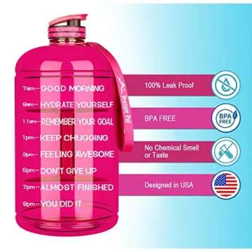 Venture Pal Large 1 Gallon/128 OZ & 74 OZ Motivational Leakproof BPA Free Water Bottle With Time Marker Perfect for Fitness Gym Camping Outdoor Sports-1Gallon-Pink