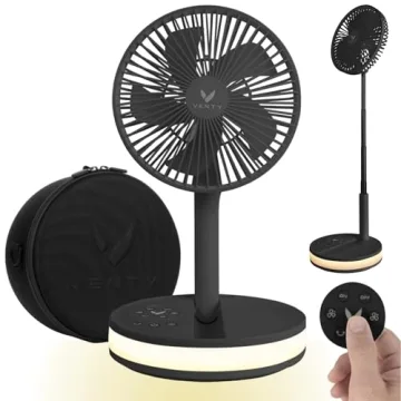 Show more The Venty Portable Fan is a revolution in personal cooling technology, designed to keep you comfortable wherever you go. With its super lightweight design at just 2.6 lbs, this fan is incredibly portable and ideal for travel, work, or home use. Its unique features include a 120° oscillation and a 180° rotation, ensuring that no matter where you are, the airflow will reach you. The durable, foldable frame makes it easy to store and transport, fitting into its stylish carry case seamlessly.