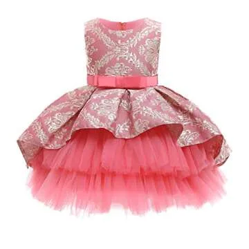 VEOAY High Low Sleeveless Girl Dress Baby Girl Baptism Dress Vintage Dress Dress (Watermelon 90)