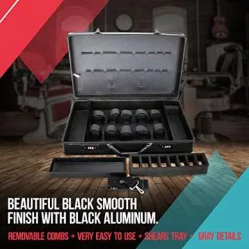 Show moreIntroducing the Ver Beauty Professional Barber Case, the ultimate companion for mobile stylists and barbers alike. This portable display and storage organizer is expertly designed to house your clippers, trimmers, blades, shears, combs, and styling tools, all in a stylish and professional manner. Manufactured with a high-quality aluminum finish, this organizer is built to endure the rigors of daily use while maintaining an elegant appearance. The chic black matte finish paired with classic aluminum trim not only looks fantastic but also adds a layer of protection and durability for your essential tools. Whether you're headed to the salon or on the go, this case provides a reliable and compact solution to keep your equipment secure and accessible.