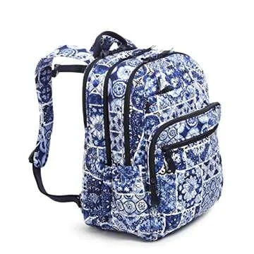 Vera Bradley Women's Cotton XL Campus Backpack, Island Tile Blue - Recycled Cotton, One Size