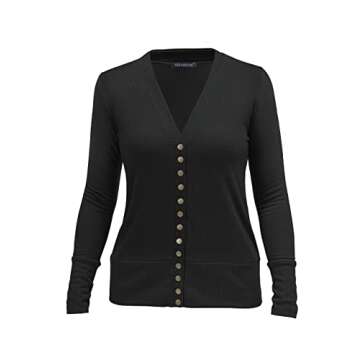 VERABENDI Women's Long Sleeve Button Down V Neck Knit Sweater Cardigans Black L