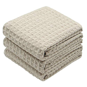 VeraSong Waffle Weave Kitchen Towels Thick Microfiber Dish Drying Towels Absorbent Tea Towels Hand Towel Lint Free 16Inch x 24Inch 3 Pack Khaki