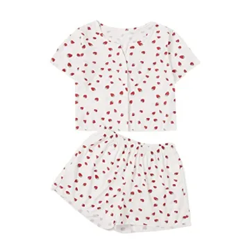 Show moreEmbrace comfort and style with the Verdusa Women's 2-Piece Button Down Short Sleeve Ditsy Floral Button Front Sleepwear Loungewear Pj Set. Crafted from soft, slightly stretchy fabric, this set ensures a comfortable fit for all-day lounging or a good night's sleep. The round neck and elastic waist design offer ease and flexibility, while the lightweight, short sleeve top and shorts combo keep you cool and comfortable. The vibrant floral print and ribbed knit details add a touch of elegance to your sleepwear collection. Perfect for sleepwear, nightwear, casual outings, holidays, and loungewear, this set is versatile for any occasion. Garment care is a breeze with machine or hand wash options, ensuring your PJ set stays vibrant and soft wash after wash.