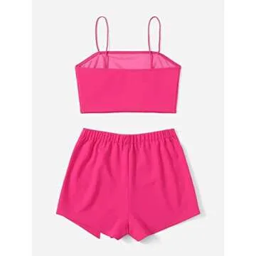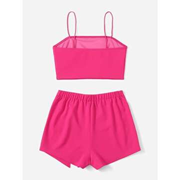 Verdusa Women's 2 Piece Outfit Crop Cami Top and Asymmetrical Shorts Sets Hot Pink M