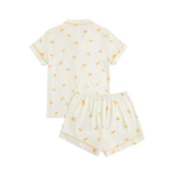 Verdusa Women's 2 Piece Printed Pajama Sets Sleepwear Button Up Shirt with Shorts Orange Beige M