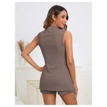 Show moreExperience effortless style and unmatched comfort with the Verdusa Women's 2 Piece Sets Sweatsuits Knit Tracksuit Outfits. This chic lounge matching set features a soft fabric blend that has just the right amount of stretch, making it perfect for all-day wear. The set includes a fashionable sleeveless shirt top with a contemporary stand collar design, and high-waisted shorts that flatter your figure beautifully. Whether you're heading out for a casual day, lounging at home, or taking a stroll at the beach, this outfit is designed to elevate your wardrobe.