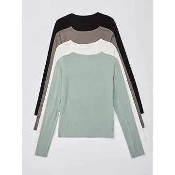 Features: 4pack T Shirt, Round Neck, Long Sleeve, Rib Knit, Basic Tee Top