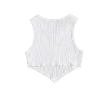 Trendy Verdusa Women's Asymmetrical Hem Sleeveless Crop Tank Top in White